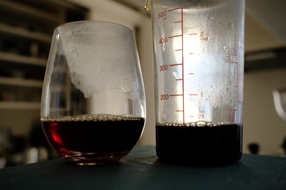 お湯が少ないと苦味が足りなく、濃い味になります。
