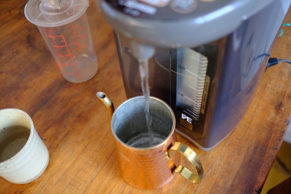 ポットからの湯は直径1〜2mm、湯がよじれないくらいです。